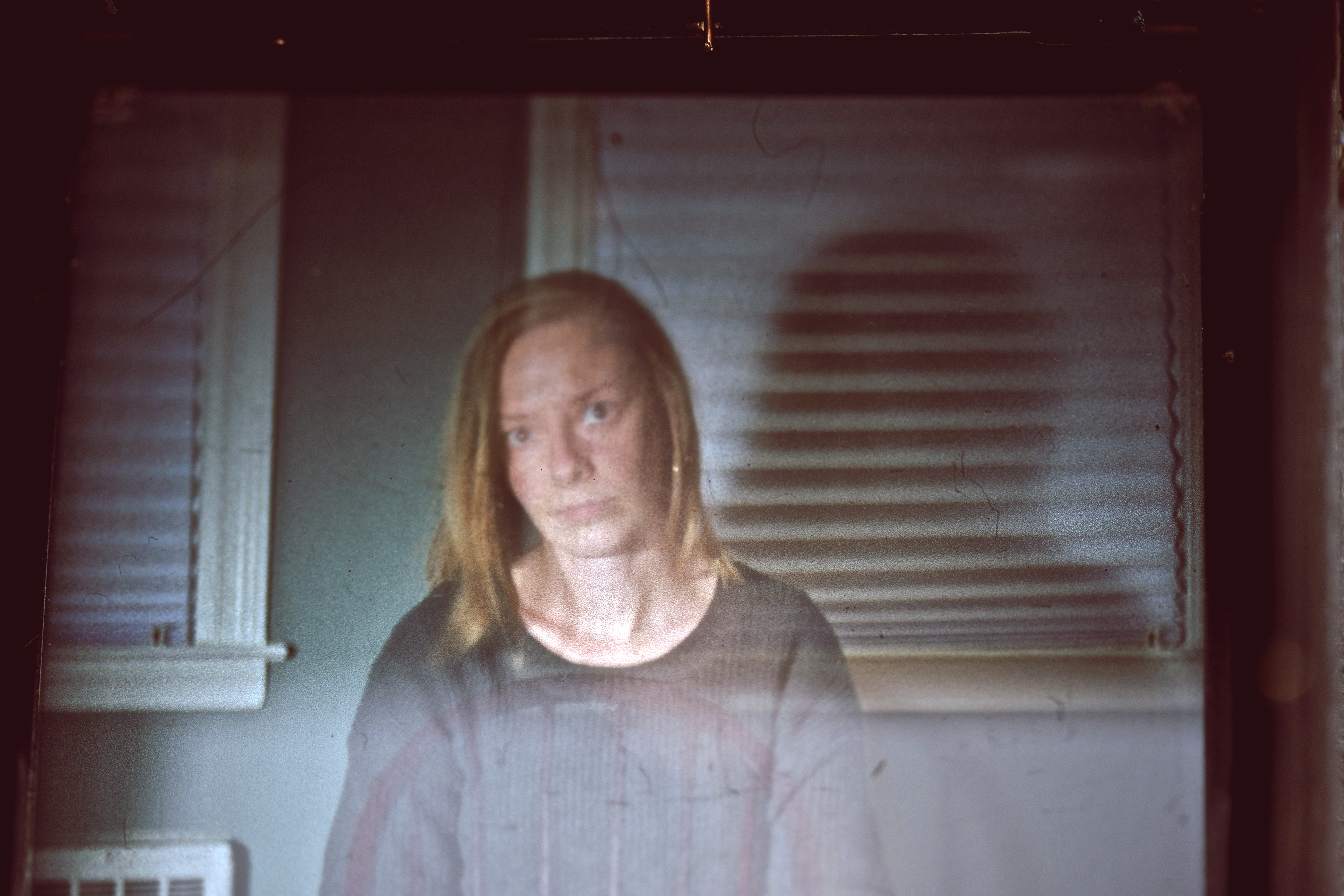 thought I’d try out the Rolleiflex with the photoflood lamp indoors at night. and seeing as how I didn’t want to subject anyone else to my painful process of tinkering to get the settings just right on this first go around, I ended up shooting myself