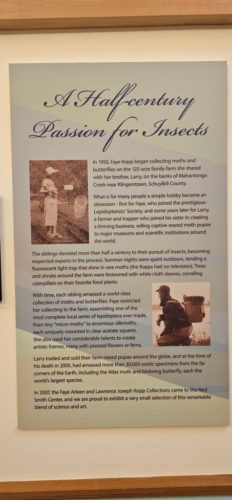 “Melissa Penley Cormier’s work gathers selections from her ever-growing collection of photographs documenting found natural wonders, many of which have deep personal meaning or stories tied to them. For this exhibition, she worked to select and highlight flowers, insects, nests, feathers, and other specimens found near the Ned Smith Center, along with ones similar to those in the Kopp Butterfly & Moth Collections. These detailed and close-up photographs hope to encourage others to reflect on their own stories, collections, and connections as well as echo Ned Smith’s advice that looking closely at the natural world can spark inspiration and a deeper understanding.” – from the 2025 Events Catalog