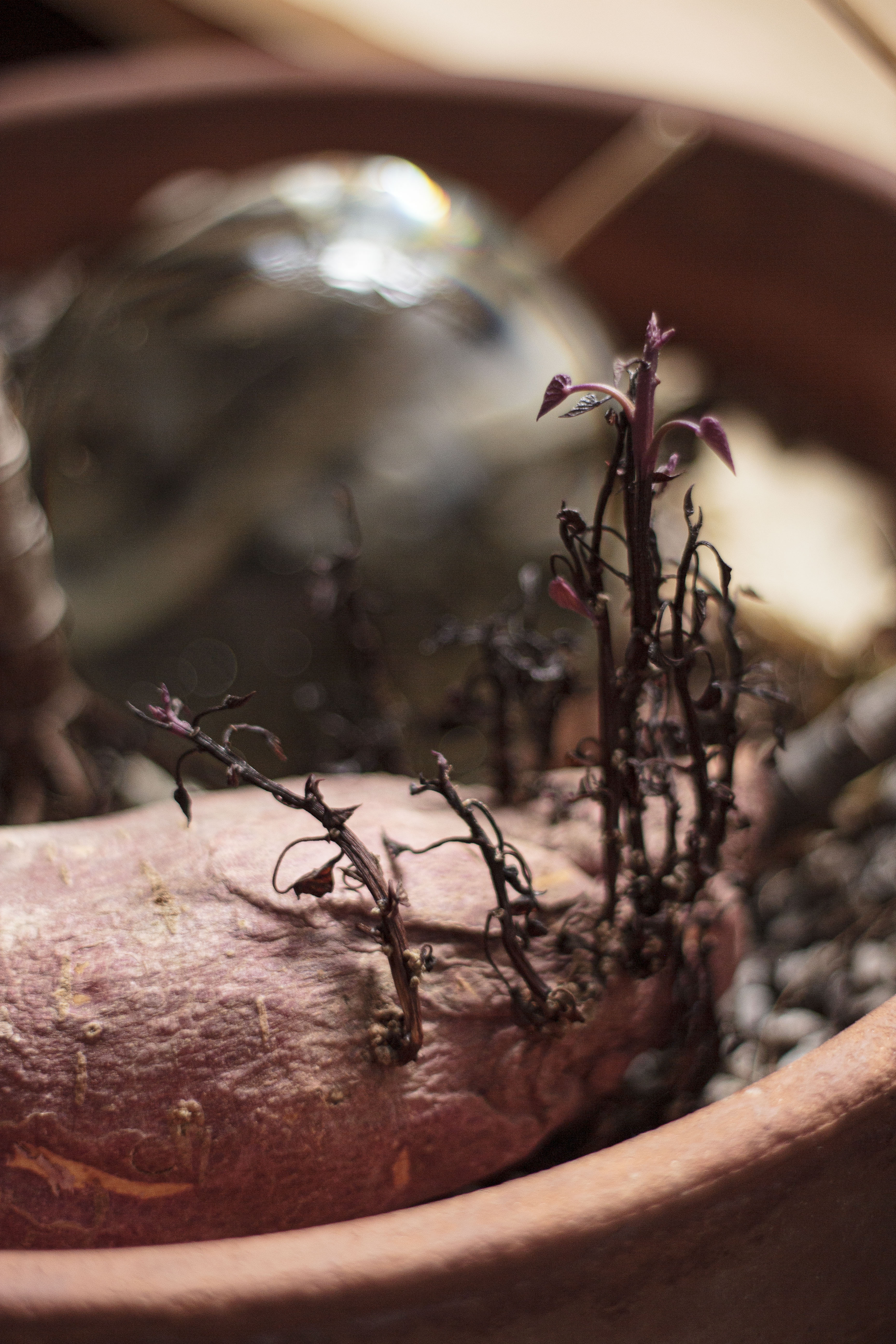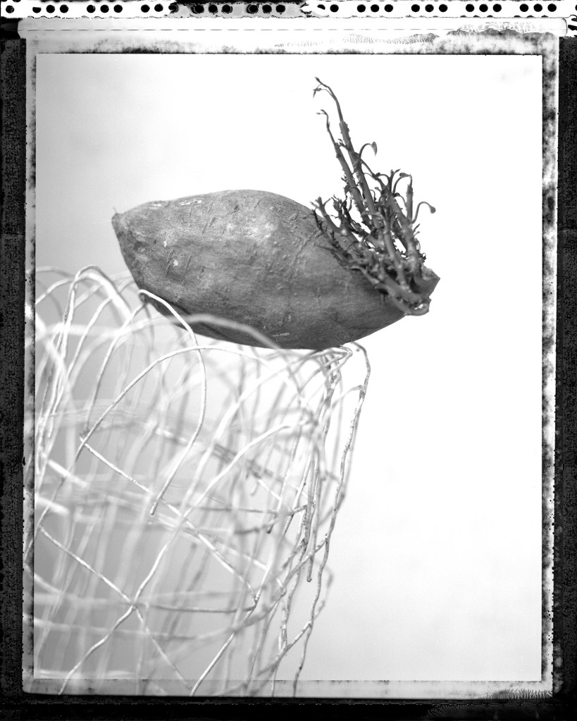 collected bits and leftover debris from failed or failing gardening attempts are captured in the studio by utilizing an outdated process on expired film stock. The results are as unpredictable as trying to coax and maintain the plants within my care. This is an ongoing project, with collaboration between other gardening artists (including Marian April Glebes of the Brick Hill Plant Lab) contributing materials.